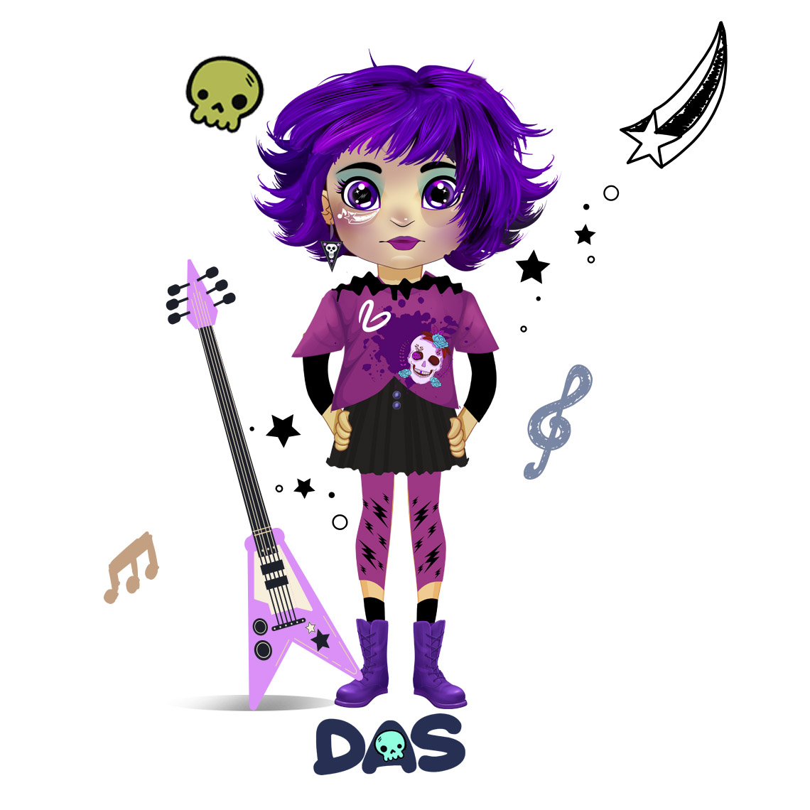 Η Das, η θλιμμένη έφηβη, γεννήθηκε ως αναγραμματισμός της λέξης sad, που σημαίνει στα αγγλικά “λυπημένος”, στον Τροχό των Συναισθημάτων σχετίζεται με το Μωβ χρώμα και συνδέεται με τα συναισθήματα της θλίψης και της λύπης. Αυτά τα συναισθήματα παρατηρούνται συχνά σε άτομα με υψηλή συναισθηματική ευφυία. Τα ίδια συναισθήματα είναι παρόντα και ενεργά όταν ένας εξωτερικός παράγοντας, ένα γεγονός, ή μια πρόκληση μας καλεί να αντιμετωπίσουμε, εσωτερικευμένα συναισθήματα και μοτίβα απόσυρσης, που συνήθως είναι για τους εφήβους ένας αμυντικός μηχανισμός, ή ένας τρόπος να σκεφτούν και να αναλογιστούν.